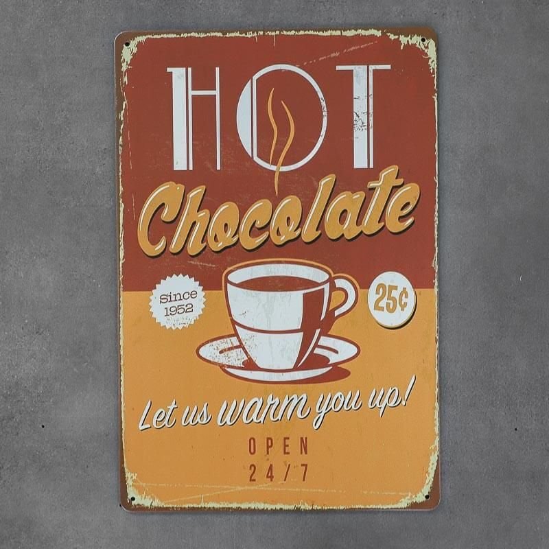 Metallist dekoratiivplaat HOT CHOCOLATE