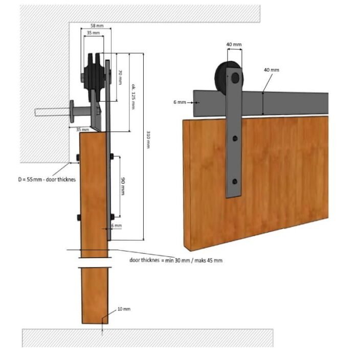 pasiūlymas apima vienvėrių stumdomų durų sistemą, montuojamą prie sienos