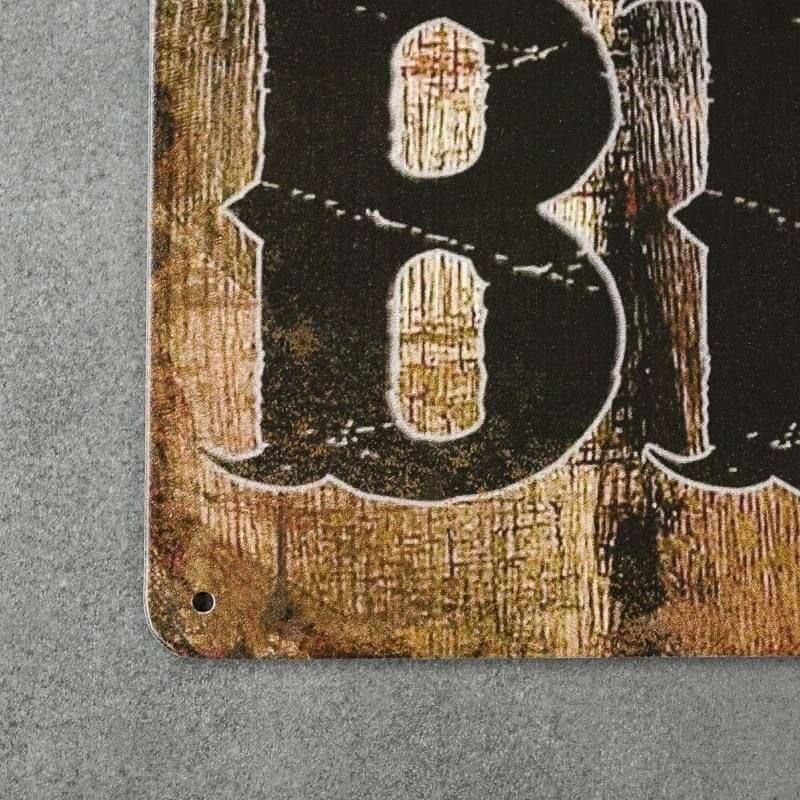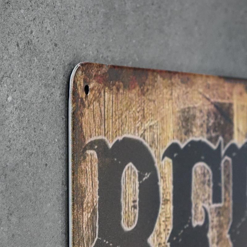 Metalinė plokštė stačiakampio formos. Plakatas padengtas aukštos dilimo klasės dažais, taip pat apsaugotas laku, apsaugančiu nuo dilimo. Kiekviena kopija supakuota į apsauginę plėvelę. Grafinis plokštelės dizainas primena vakariečių plakatus – pažeistos lentos fone, stilizuotas šriftas ir paprastos piktogramos. Originalumą prideda senėjimo pėdsakai, matomi iškabos paviršiuje. Plokštelė pritvirtinta subtiliomis angomis.