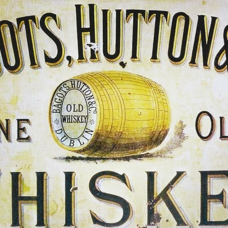 Produkte pristatoma „Bagots”, „Hutton &; Co” „Fine Old Whiskey” iškaba