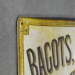 Metalinė plokštė stačiakampio formos. Plakatas padengtas aukštos dilimo klasės dažais, taip pat apsaugotas laku, apsaugančiu nuo dilimo. Retro metalo sienų apdaila yra ideali alternatyva klasikiniams paveikslams, tyčiniai senėjimo požymiai taip pat prideda patrauklumo. Plokštelė pritvirtinta subtiliomis tvirtinimo angomis.