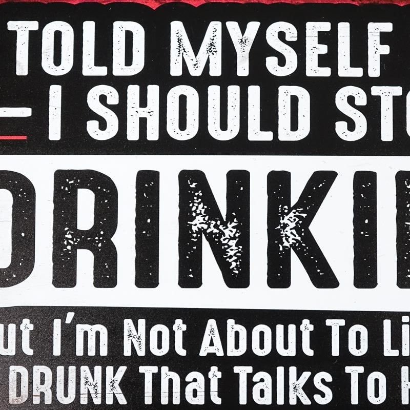 Produkte rašoma: „Pasakiau sau, kad turėčiau nustoti gerti. Bet aš nesiruošiu klausytis girtuoklio, kuris kalbasi su savimi”.