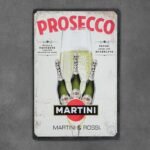 Metalinė plokštė stačiakampio formos. Plakatas padengtas aukštos dilimo klasės dažais, taip pat apsaugotas laku, apsaugančiu nuo dilimo. Kiekviena kopija supakuota į apsauginę plėvelę. Vintažiniai metaliniai plakatai yra populiari sienų dekoravimo forma, suteikianti charakterį namams, butams ir komercinėms bei tarnybinėms patalpoms. Būdingi senėjimo pėdsakai pabrėžia plieno plakato retro pobūdį. PROSECCO MARTINI modelis išsiskiria paprasta grafika. Plokštelė pritvirtinta subtiliomis angomis.