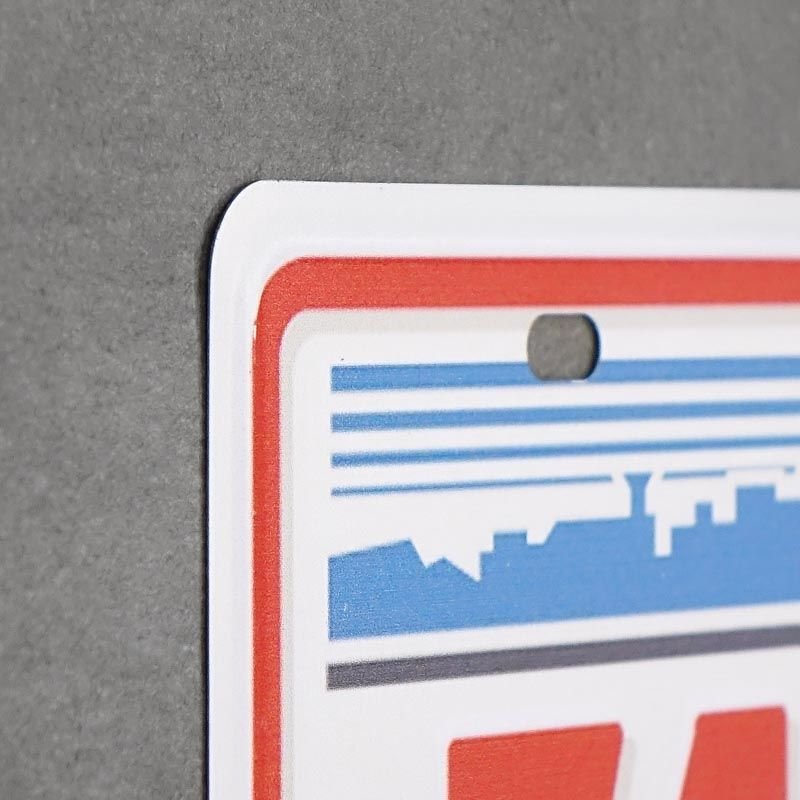 Dekoratyvinė lenta stačiakampio formos, pagaminta iš metalo. Produktas buvo padengtas aukštos dilimo klasės dažais, taip pat apsaugotas laku, apsaugančiu nuo dilimo. Gaminys pristato valstybinius numerius tiesiai iš Amerikos miestų. Tai bus originali puošmena kambaryje, kiekvienam paaugliui. Stabilus plokštės tvirtinimas yra įmanomas dėl subtilių angų.